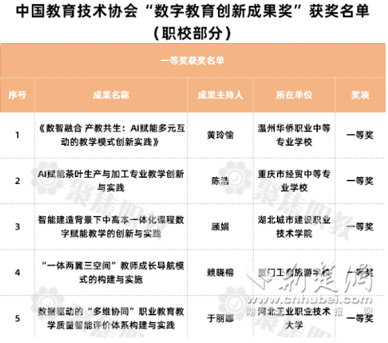 京中网讯(湖北日报网)(记者齐一轩、通讯员李霞)近日,中国教育技术协会数字教育创新成果奖评选结果正式揭晓。湖北省城建职业技术学院施工管理系顾娟老师、徐红雷老师团队组织的项目《智慧建设背景下中高中一体化大学课程数字化赋能教育创新与实施》在全国数百所高校和机构中脱颖而出,荣获一等奖。